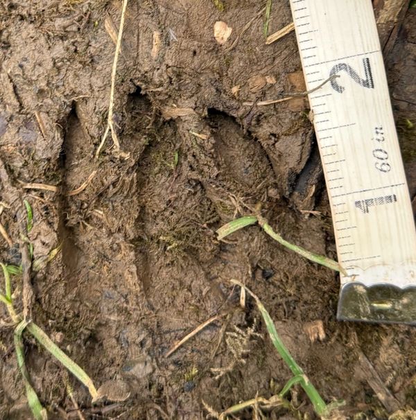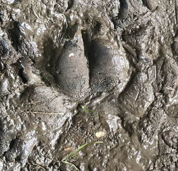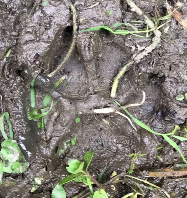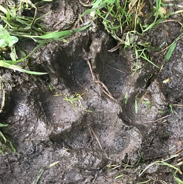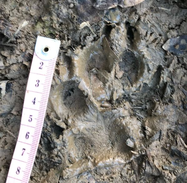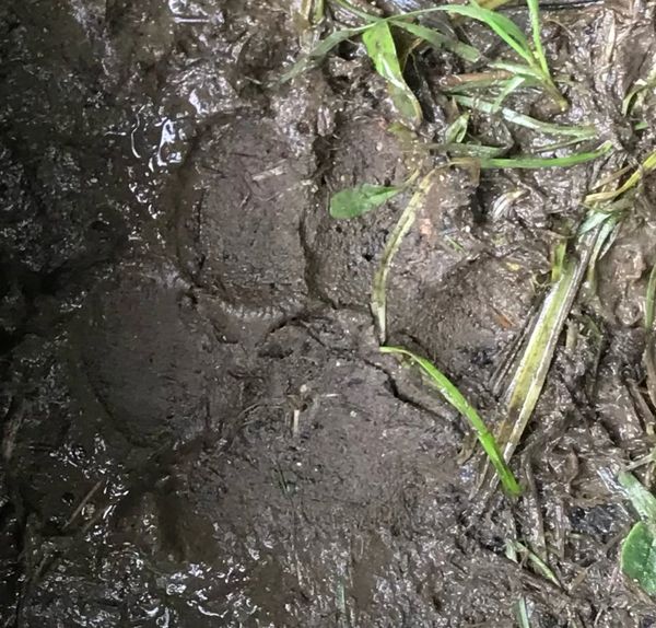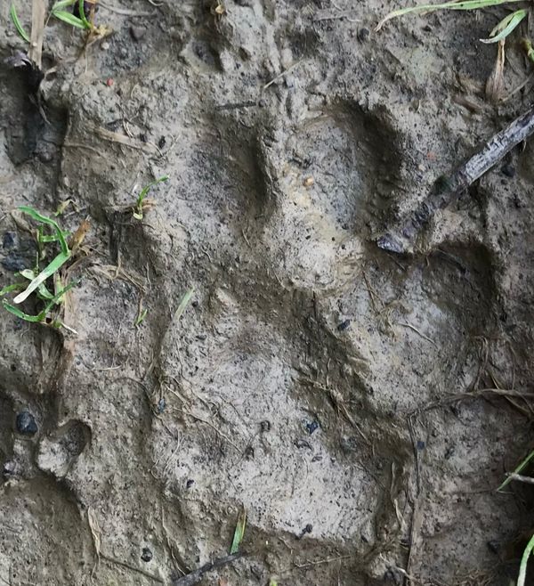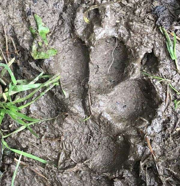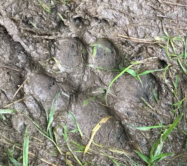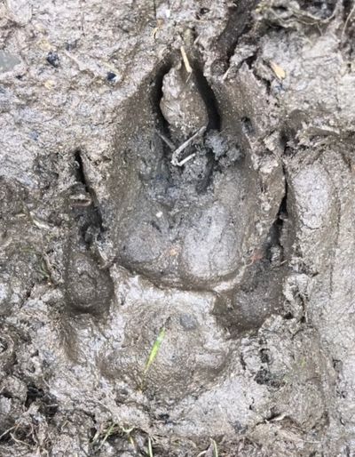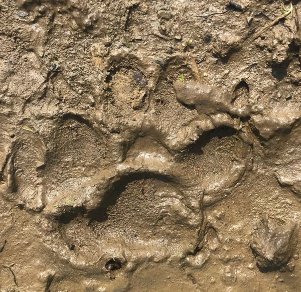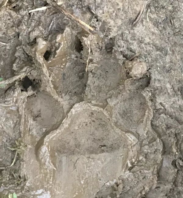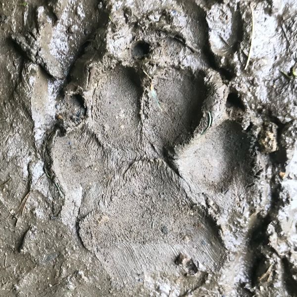 Canine pugmark, with non-typical claw marks, due to deep, wet mud.