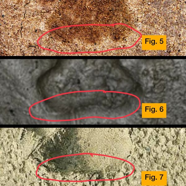 The rear edge of the plantar pad has three lobes (Fig 5), but if the print isn't clear, they may appear as just two lobes (Fig 6) or even as a straight edge (Fig 7).